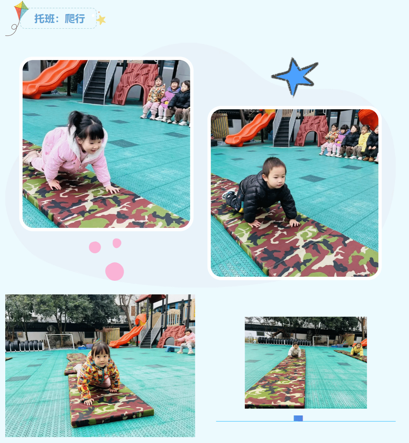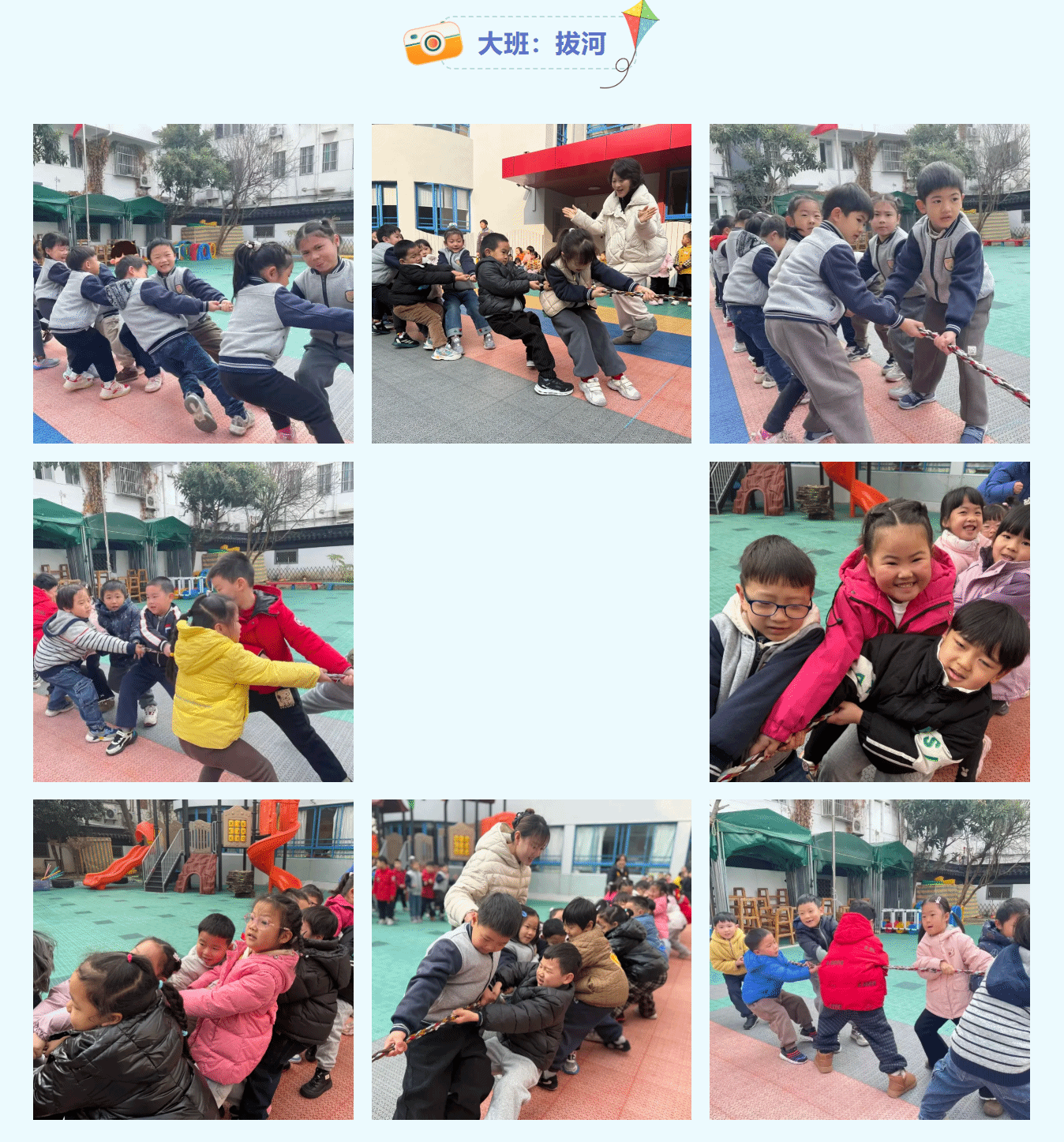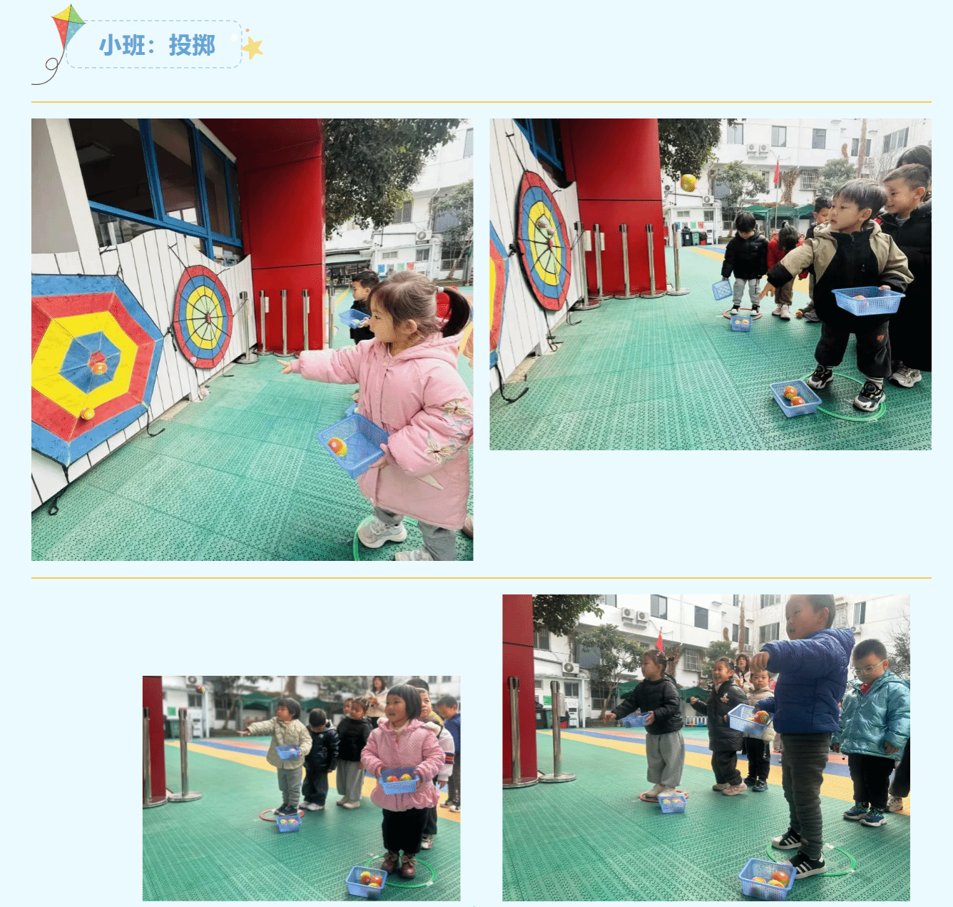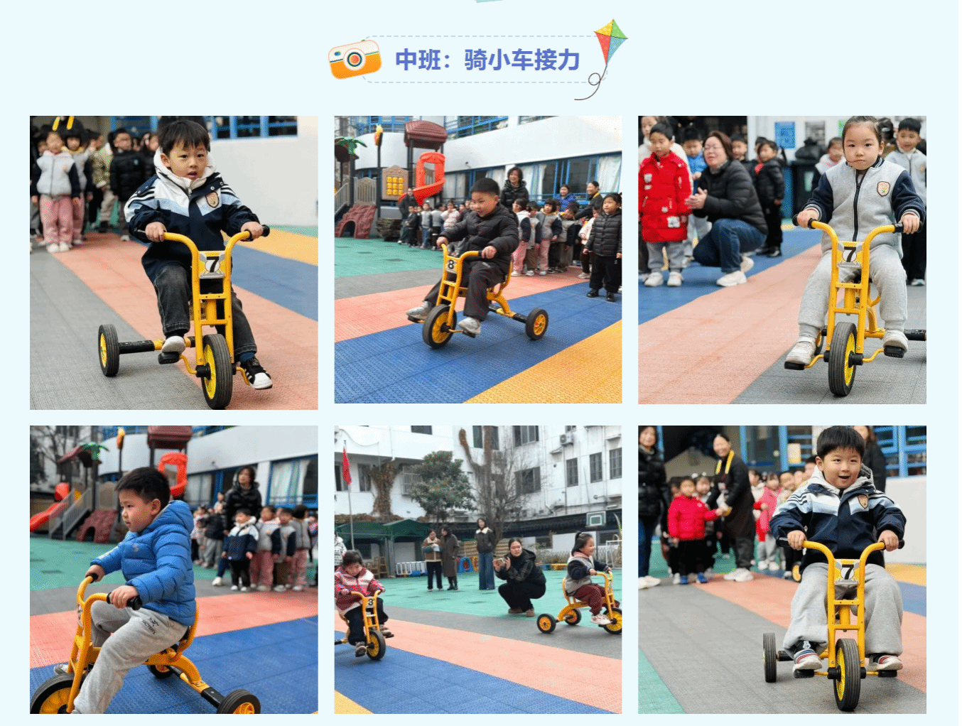 参与是成长的勋章,运动是童年的欢歌。本届“冬日健康节”根据不同年龄段幼儿特点精心设置爬行、投掷、拍球、跳绳等个人赛项目,看!运动场上,孩子们用不服输的劲头、敢挑战的勇气,将熠熠生辉的运动精神展现得淋漓尽致。