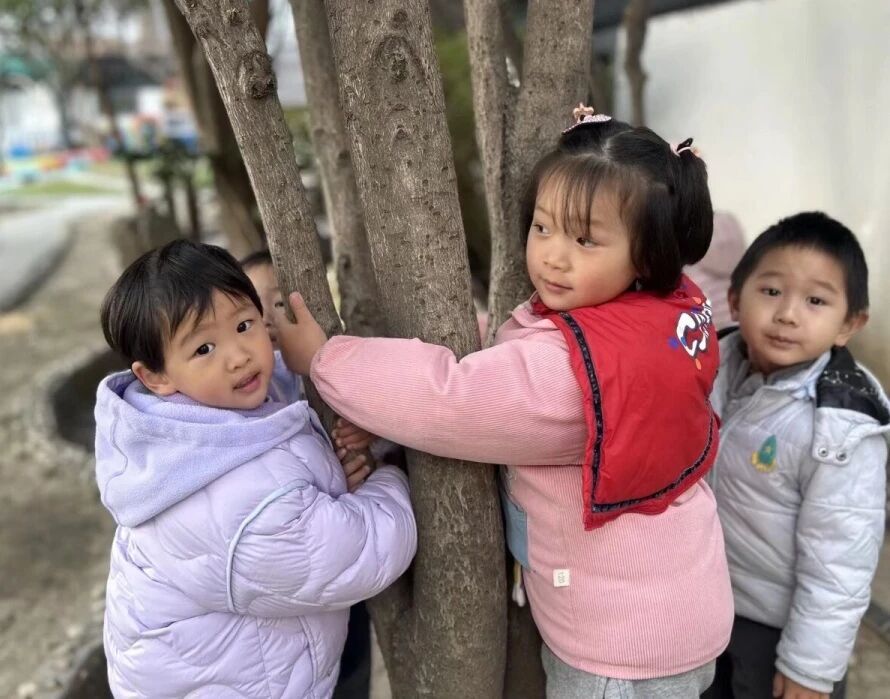 托班萌娃们和园里的大树来了一场温暖约会。他们轻轻摸一摸粗糙的树皮,闻一闻清新的草木香气,听一听风吹枝叶的沙沙声响……在与大树的互动中,孩子们把自然的美好,悄悄藏进小小的心里。