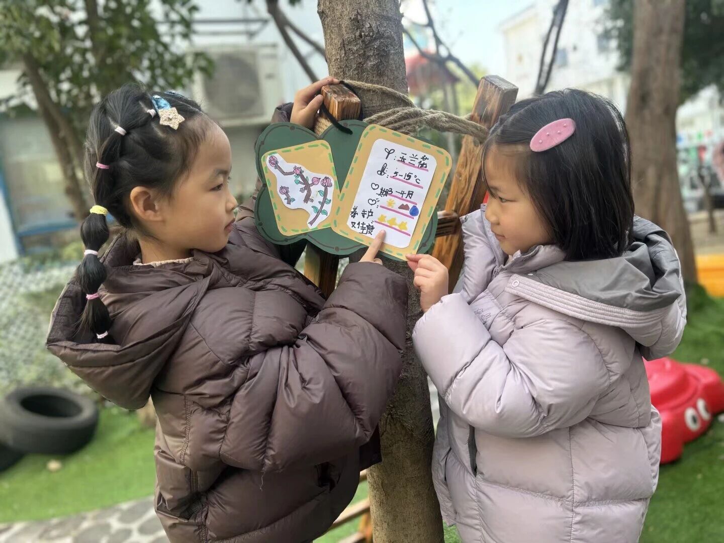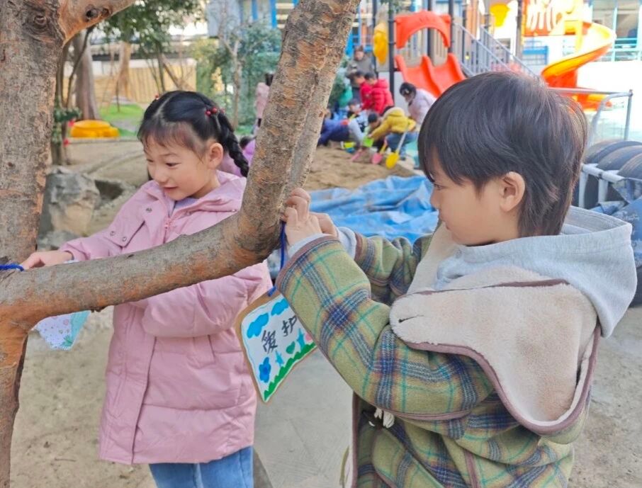 大班哥哥姐姐了解植树节的起源与意义,用行动守护树木、守护自然。他们制作了“爱心护树牌”,挂在“树朋友”身上,许下守护绿色的小小约定。孩子们用实际行动传递环保理念,让爱自然、护环境的种子在心中生根发芽!
