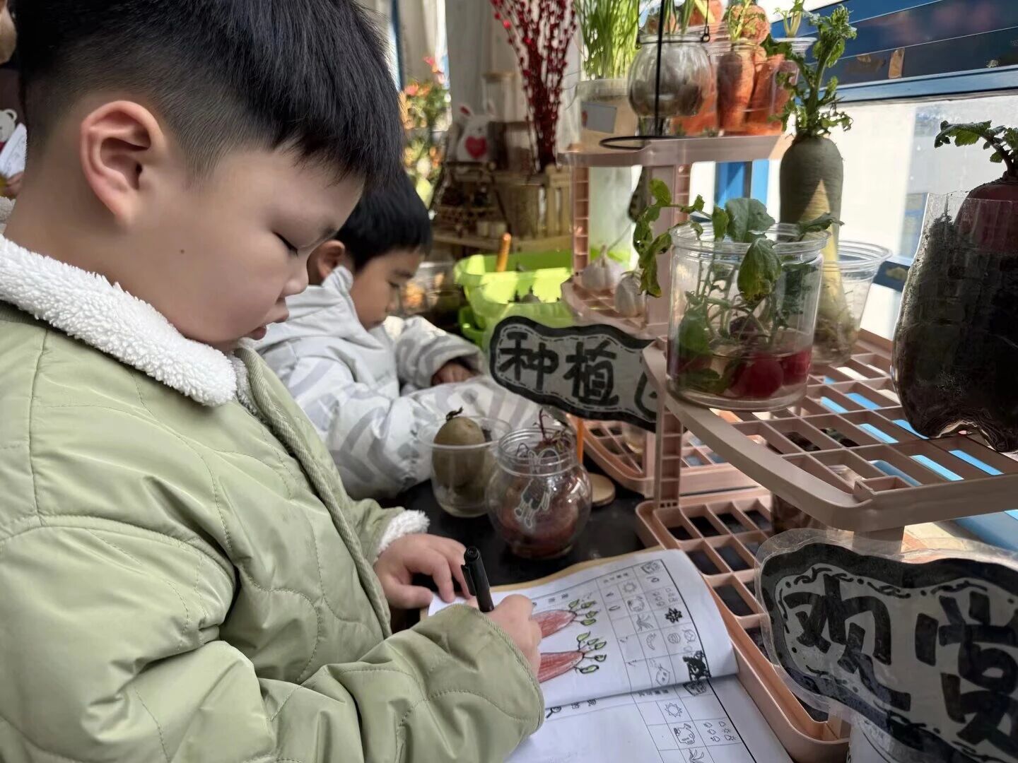 中班宝贝们化身“植物小管家”!他们按照值日表,认真给植物浇水、松土,还用心绘制植物生长日记。在照料与观察中,孩子们学会了负责与坚持,提升了合作能力,成为守护绿色、爱护自然的“小卫士”。