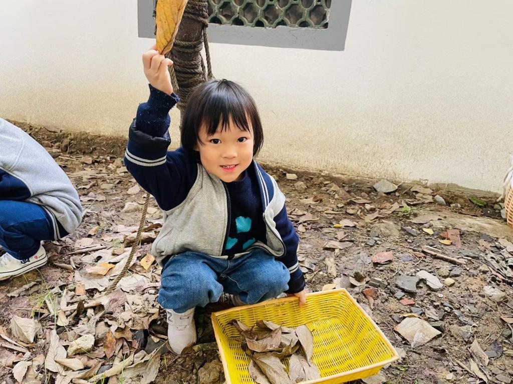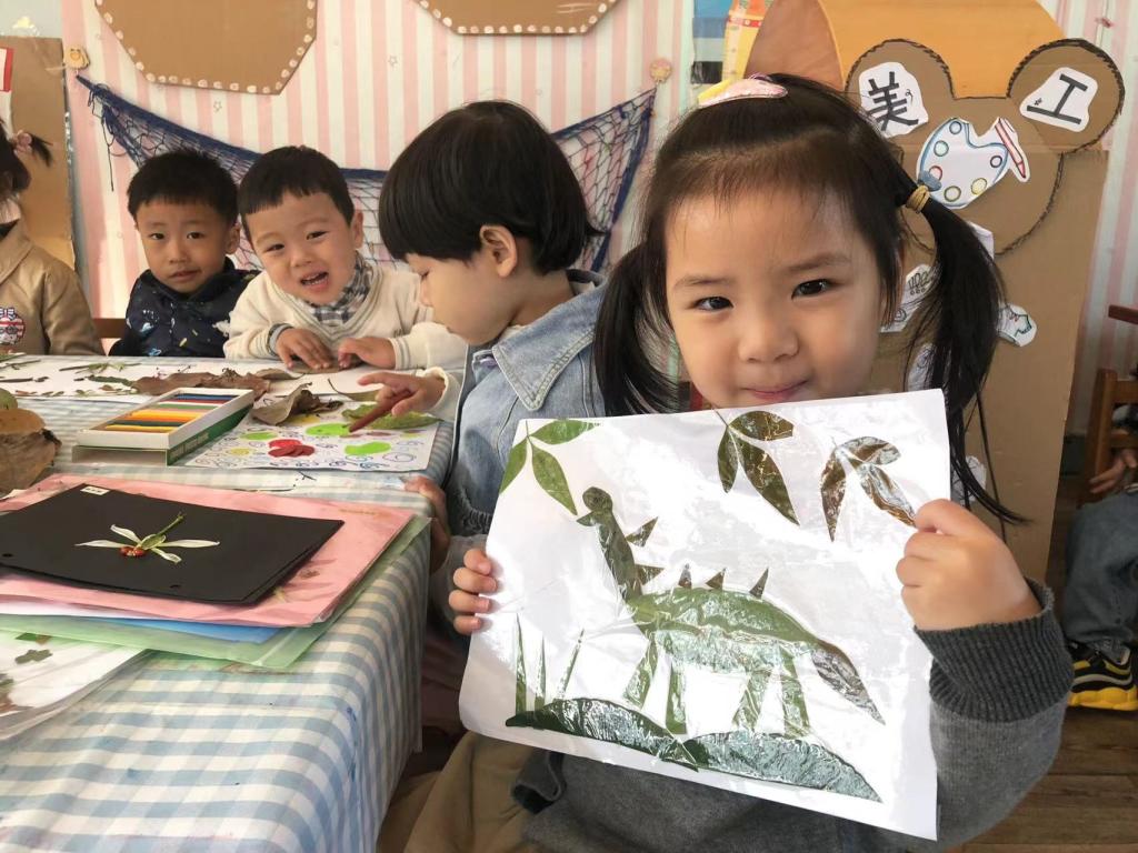 幼儿:我可以用掉落下来的树叶来画画,可美了。