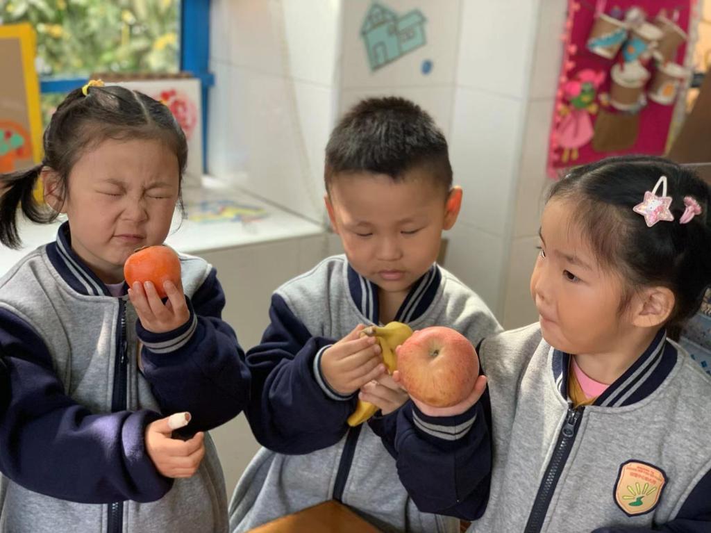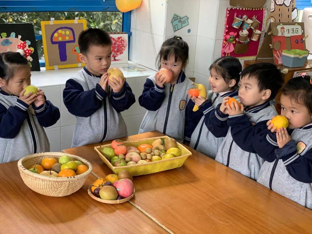 孩子们纷纷带来了秋天的各种各样的果实,原来秋天不仅有红彤彤的石榴,还有多汁的水梨,压弯了枝头的金桔,黄灿灿的柿子……这么多的水果里有很多营养哦,多吃水果身体棒棒,秋天可真是丰收的季节呀!