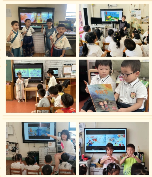 师生共读绘本《中秋节》,了解中秋的来历、习俗和过程,感受中国传统文化特色和意味。