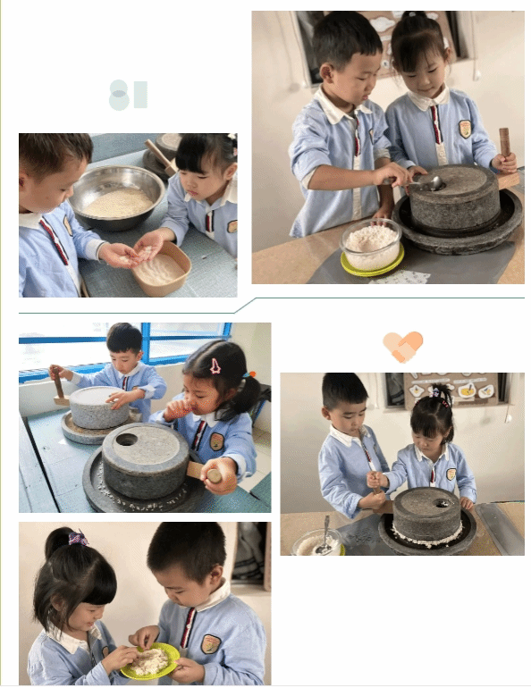 把米粒放在石磨里轻轻研磨,会有什么变化呢?每一次研磨,米粉会有什么不同呢?细细的米粉可以怎么吃呢?中班的孩子们跟随着大米开启了一场舌尖上的米粉之旅!