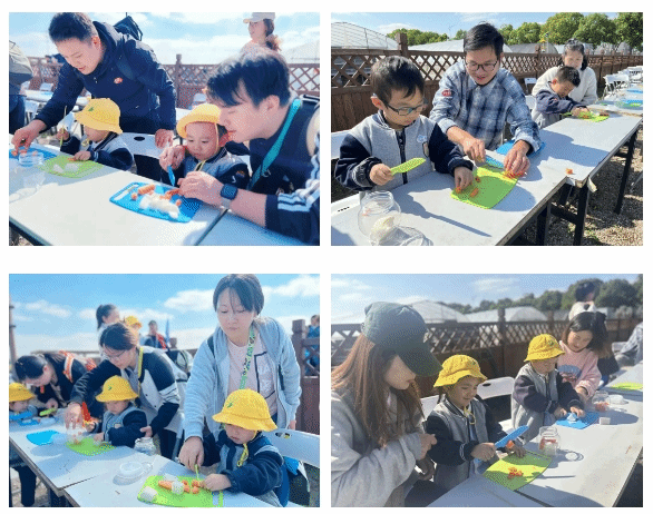 在暖暖秋日下,亲子自然游戏开始啦!孩子们用独轮车忙碌地运送谷物,体验劳动的艰辛与收获的快乐。农忙间隙,孩子们和爸爸妈妈化身成小卫士除害护田,在游戏中懂得了生态平衡的重要性。