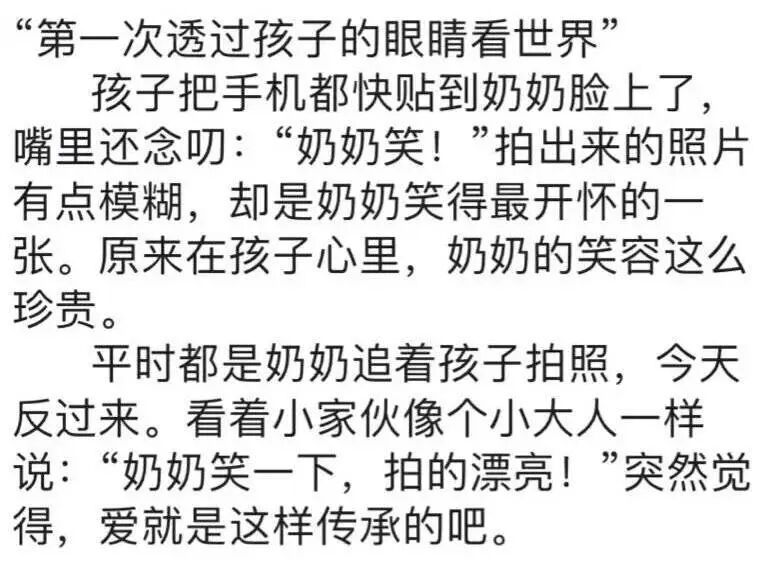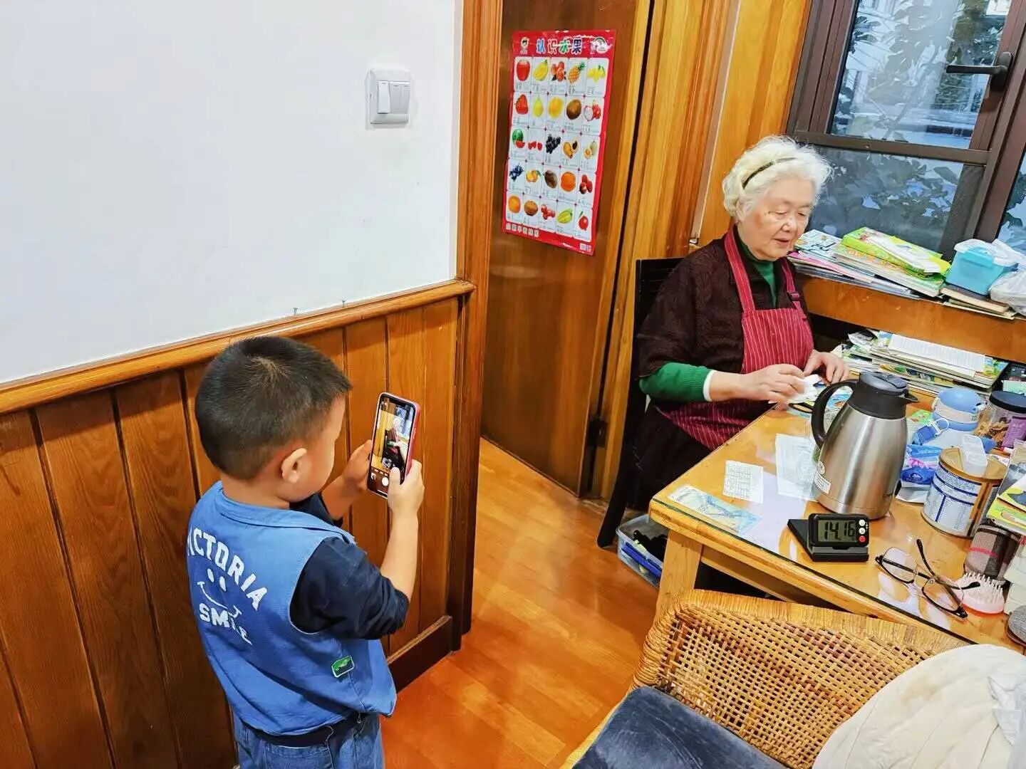 宝贝们踮起脚尖,努力调整相机角度,专注地按下快门,镜头里映出爷爷奶奶温暖的笑容。