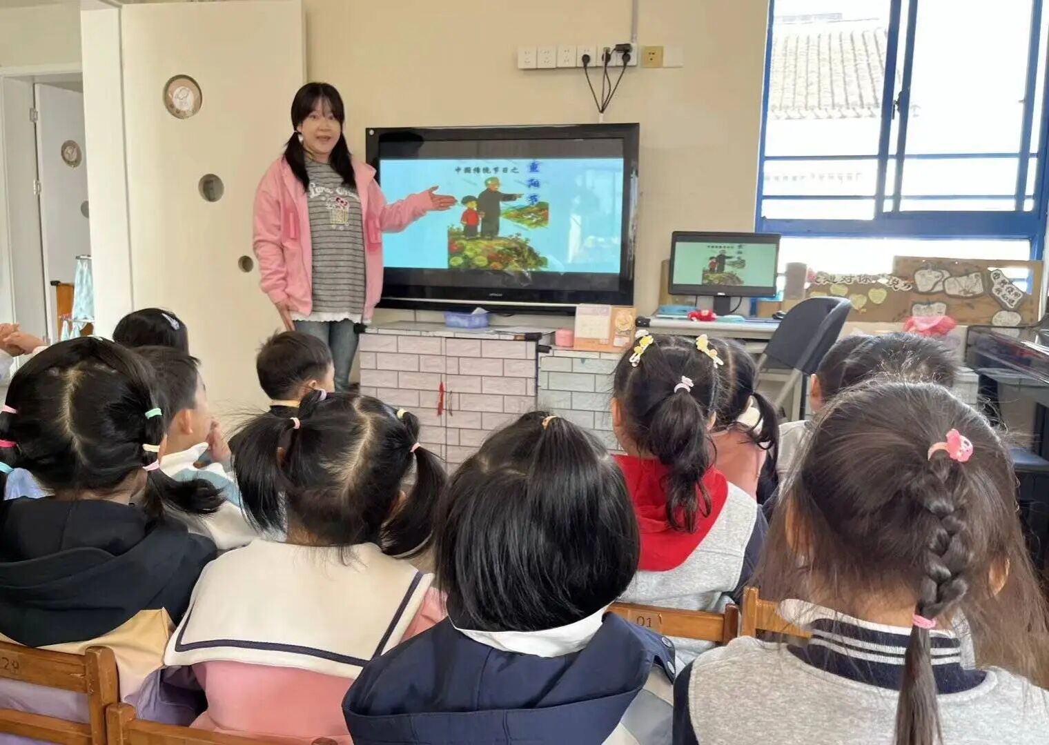 师生共读绘本《中国传统节日之重阳节》,在生动的故事里探寻重阳节由来。通过趣味讨论、互动问答与小调查,孩子们轻松了解到登高、赏菊、敬老等传统习俗。