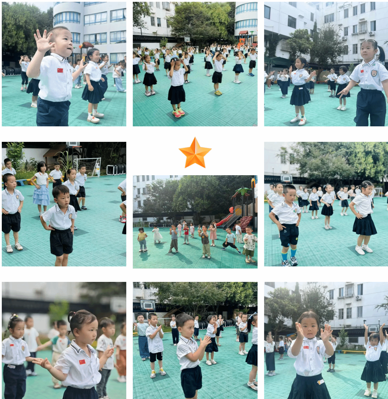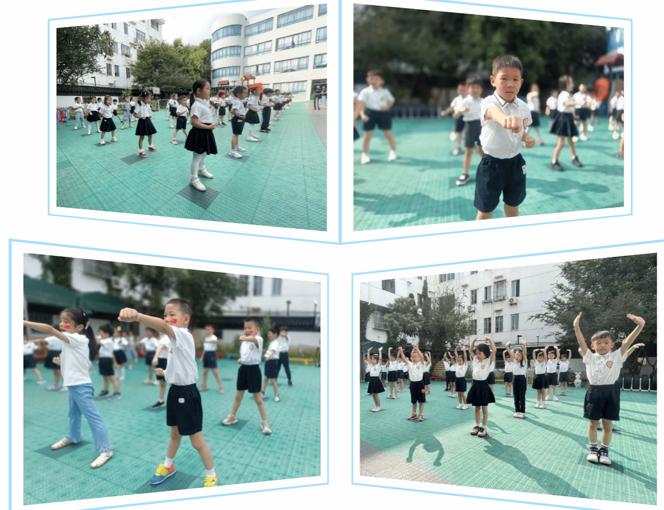 看!大班的“小小兵”们开启了队列操练,齐步走、转身、踏步走……他们变换着整齐的队形,走出了小兵的飒爽气势。随后的武术操表演更是亮点十足,他们扎稳马步、利落转身,每一个动作都透着精气神,把小小兵的勇敢与坚毅展现得淋漓尽致!
