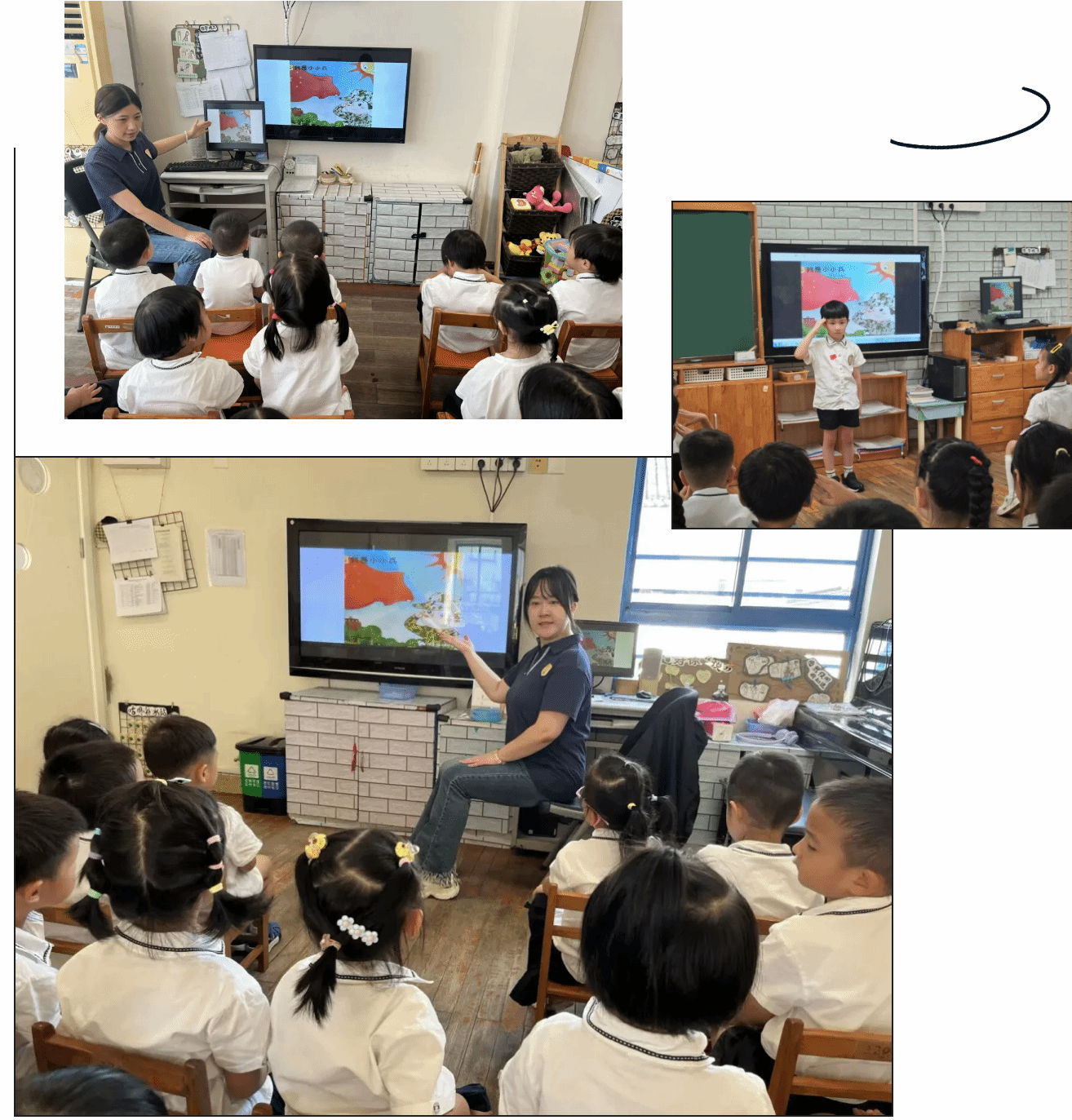 托小中班的弟弟妹妹们也不甘示弱,跟着欢快的韵律舞动起来。他们用蓬勃向上的姿态,把对祖国的热爱融入每一个节拍,为祖国华诞献上最活力的礼赞!