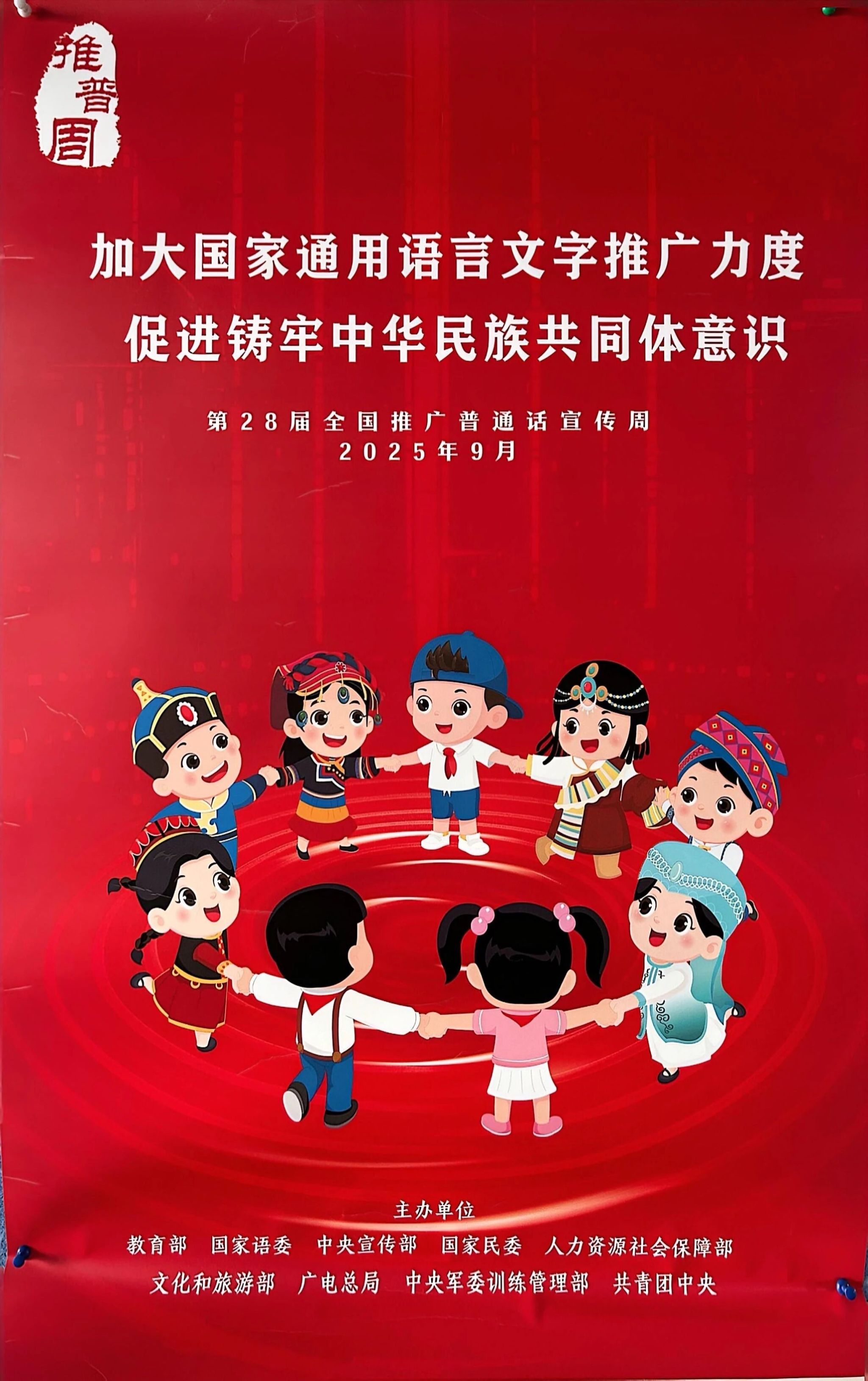 秋风送爽,丹桂飘香,第28届“全国推广普通话宣传周”如期而至。围绕“加大国家通用语言文字推广力度,促进铸牢中华民族共同体意识”的核心主题,我园精心策划了形式多样的推普系列活动,让中华优秀语言文化在萌娃心中生根发芽。
