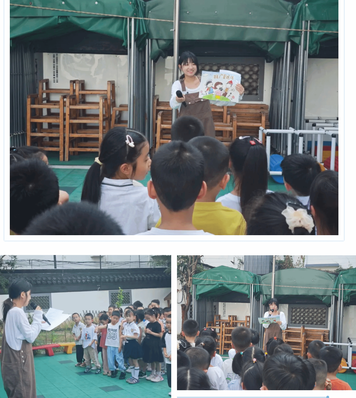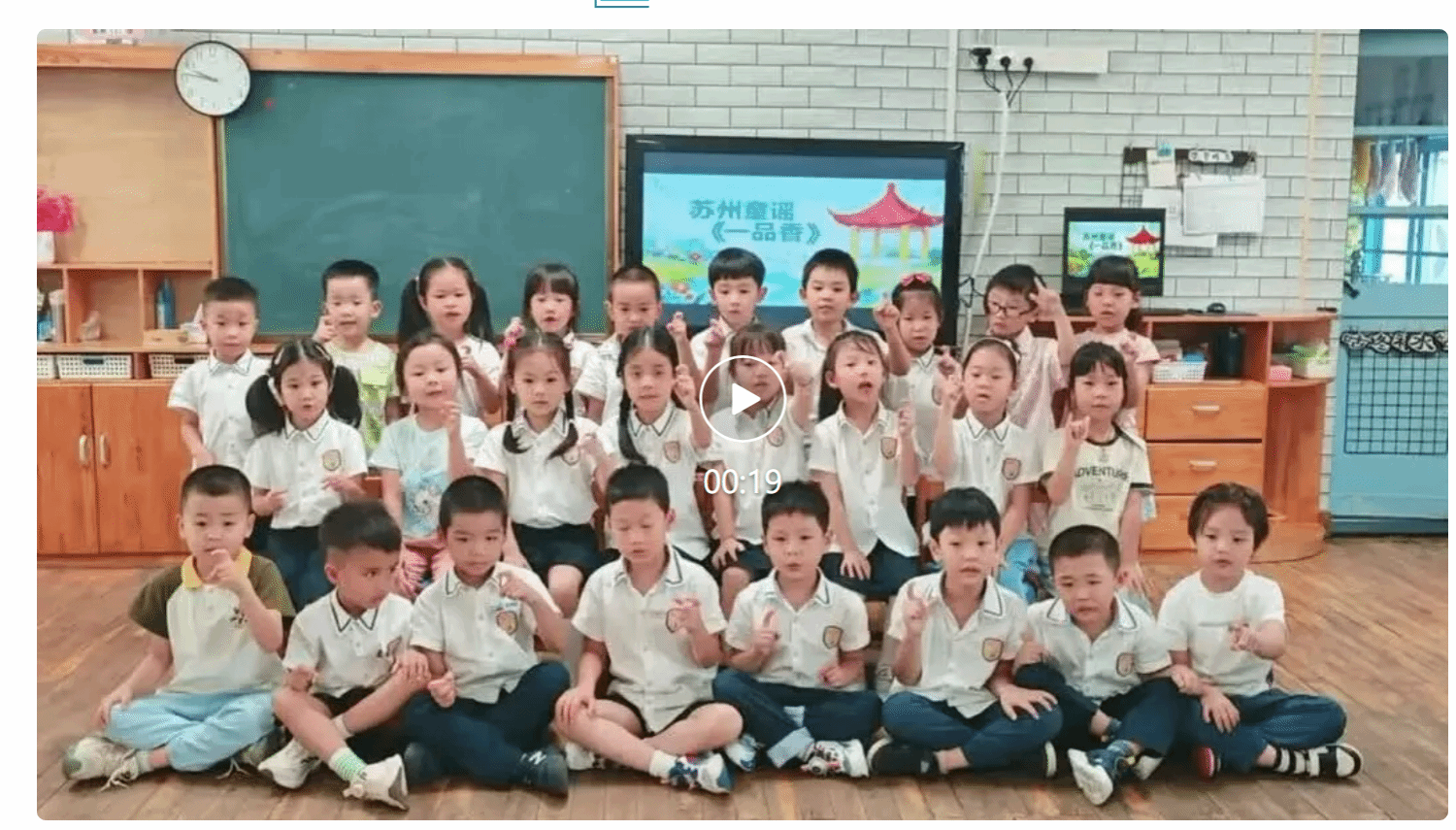 我们充分挖掘家长资源,邀请评弹演员家长录制苏州“闲”话童谣视频。视频里软糯婉转的吴侬软语,让孩子们听得入了迷。各年龄段幼儿跟着视频学念童谣,在说说演演中,感受家乡方言的独特韵味。