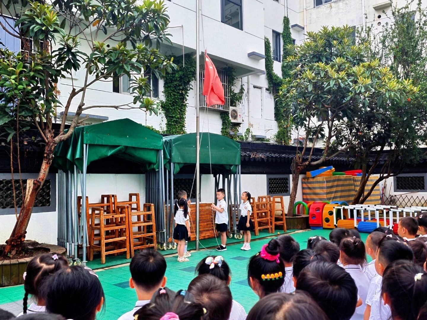 看,“小小护旗手”们正以最庄严的姿态,开启这场新学期升旗仪式。五星红旗冉冉升起,孩子们脸上满是崇敬,爱国的种子正借着这抹中国红,在心里悄然发芽。