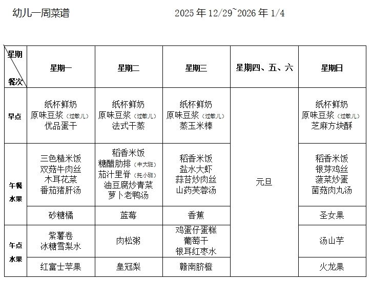 每周食谱