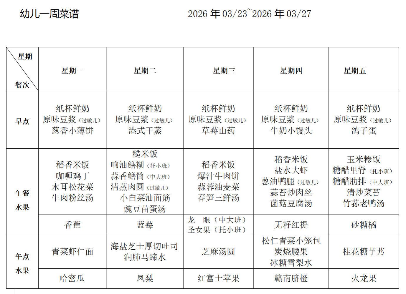 每周食谱