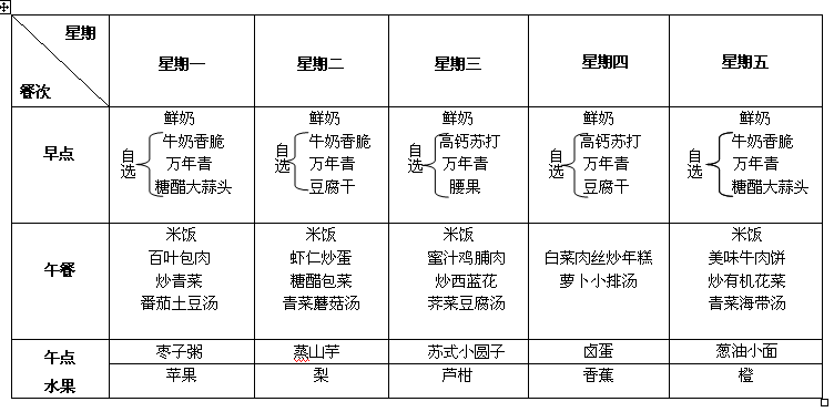 每周食谱