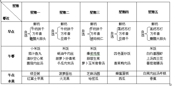每周食谱
