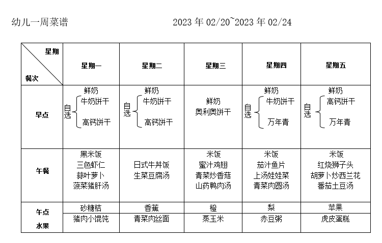 每周食谱