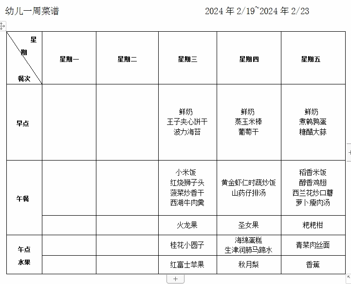 每周食谱