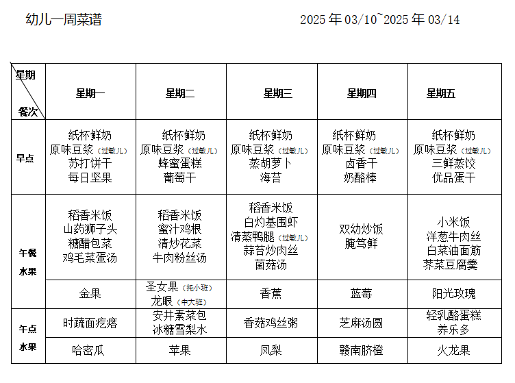 每周食谱