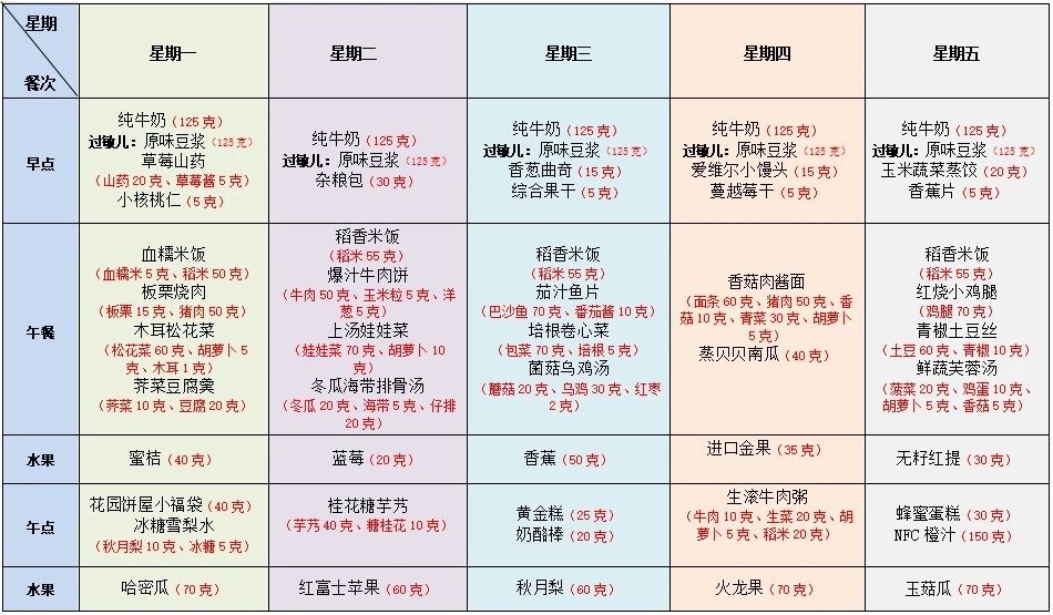每周食谱